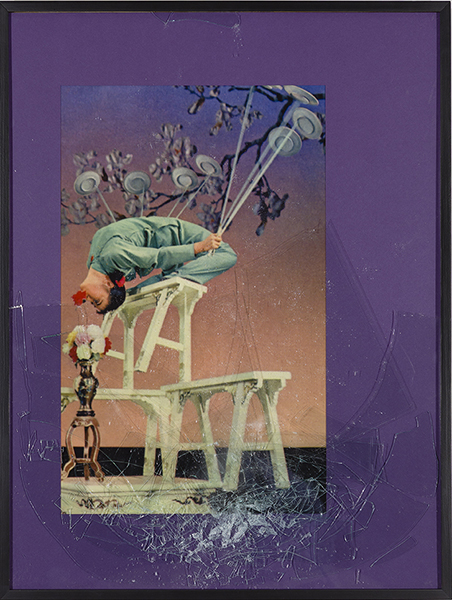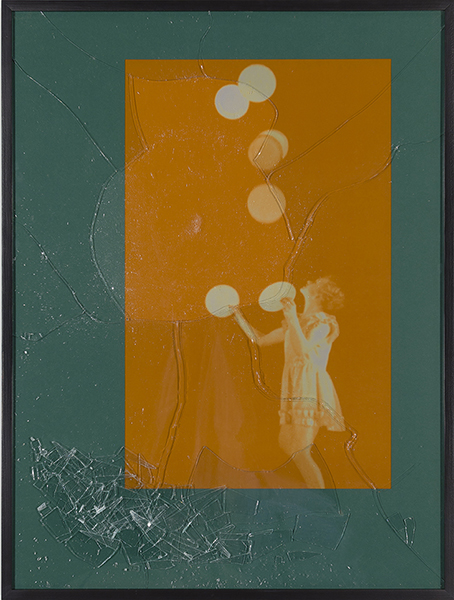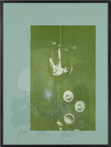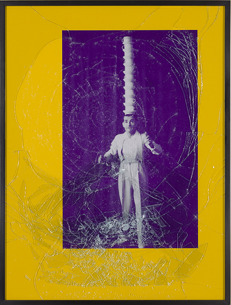Iris print in colored matte with broken glass embedded in Plexiglas