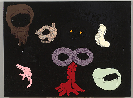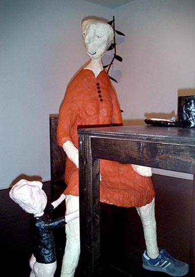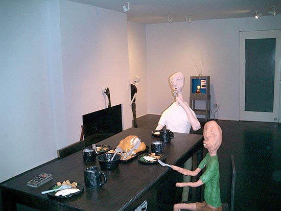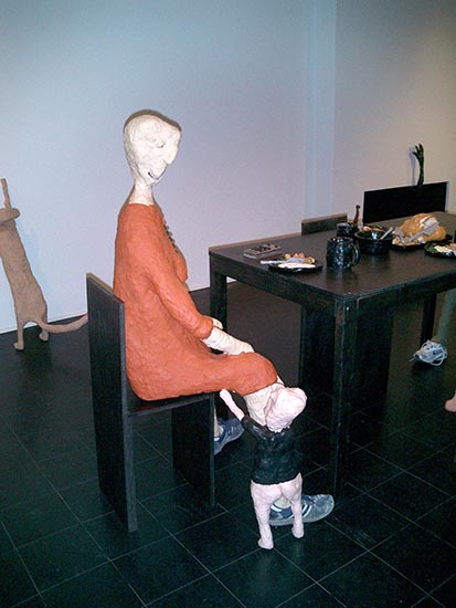 Sculpey, plywood, Plastelina, acrylic paint, resin, PVC tubing, wire mesh and papier-mâché