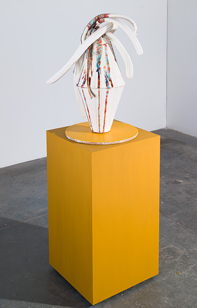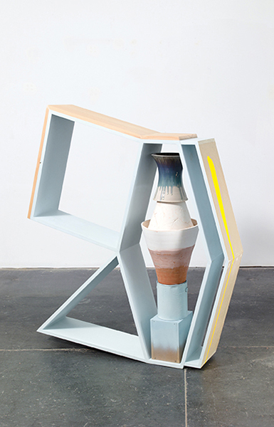Earthenware, glaze, pine, spray paint, enamel, hardware