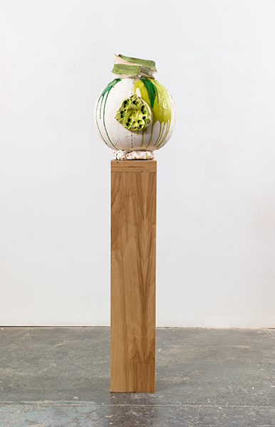 Earthenware, glaze, pine, oil, spray paint