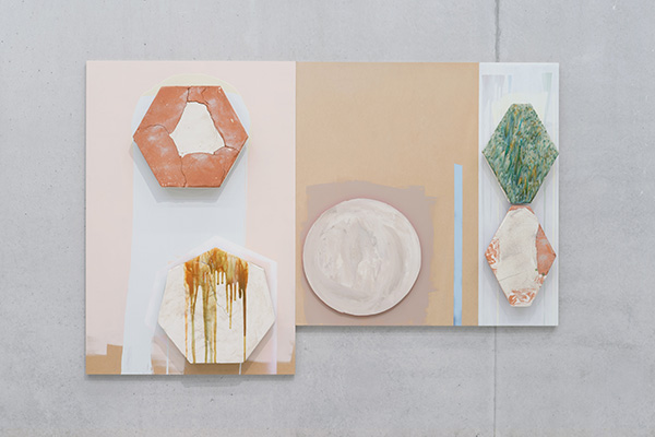 Earthenware, terracotta, glaze paint, medium-density fiberboard (MDF), acrylic paint, and